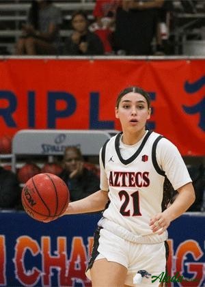 | Attended Piedmont High School where she teamed up with Trinity Zamora. Scored 2,284 points in her prep career. As a senior was the San Francisco Chronicle East Bay Player of the Year and the 49ers Cal-Hi NSC Scholar Athlete of the Year after averaging 30.3 points, 6.6 rebounds, 4.1 assists and 4.0 steals per game. Scored 40 or more points seven times and 30 or more points 16 times… Had a game with 52 points. Won back-to-back WACC Player of the Year awards. As a junior, averaged 20 points, five rebounds, four assists and four steals per game while helping her school go 27-1. As a sophomore averaged 24 points, eight rebounds, four steals and three assists and was named to the San Francisco Chronicle All-Metro Team. Made the WACC First Team as both a freshman and sophomore. Had a perfect 4.0 GPA. | |
