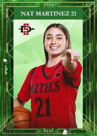 This trading card is comprised of 4 high resolution images and a film clip of Nat Martinez playing basketball for SDSU. The web view contains low resolution teaser images and a clipped video.By purchasing the digital trading card, you can access the high resolution images and video, which you may download. By purchasing this card, the athlete will receive compensation directly to help with their student athlete goals through the NIL (Name Image Likeness) program.