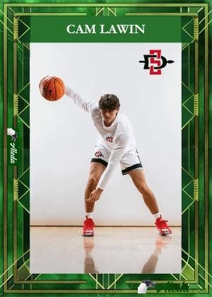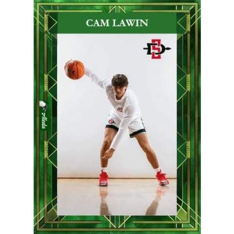 This trading card is comprised of 4 high resolution images and a film clip of Cam Lawin playing basketball for SDSU. The web view contains low resolution teaser images and a clipped video. .By purchasing the digital trading card, you can access the high resolution images and video, which you may download. By purchasing this card, the athlete will receive compensation directly to help with their student athlete goals through the NIL (Name Image Likeness) program.