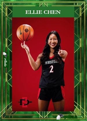 This trading card is comprised of a high resolution images and a video clip of Ellie Chen playing basketball for SDSU. The web view contains low resolution teaser images and a clipped video. .By purchasing the digital trading card, you can access the high resolution images and video, which you may download. By purchasing this card, the athlete will receive compensation directly to help with their student athlete goals through the NIL (Name Image Likeness) program.