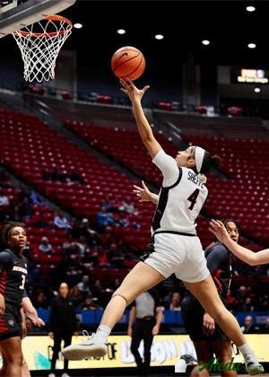 Played at USD for two years where she was an All-WCC Second Team selection in 2023-24 and a WCC All-Freshman Team pick in 2022-23… As a sophomore, she started all 31 games and led USD in scoring (12.2 ppg) assists (5.1 apg), assist-to-turnover ratio (+1.4), steals (1.5 spg) and free throws made and attempted (98-133, .737)… Her 5.1 assists per game ranked third in the WCC… She scored in double-digits in 22 of USD’s 31 games… Set career-highs for points (23) and assists (8) against SDSU… As a freshman, averaged 4.1 points, 2.1 rebounds and 1.3 assists per game.