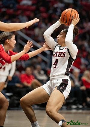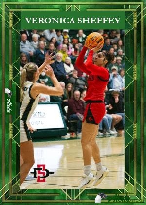 This trading card is comprised of 4 high resolution images of Veronica Sheffey  playing basketball for SDSU. The web view contains low resolution teaser images and a clipped video. .By purchasing the digital trading card, you can access the high resolution images and video, which you may download. By purchasing this card, the athlete will receive compensation directly to help with their student athlete goals through the NIL (Name Image Likeness) program.
