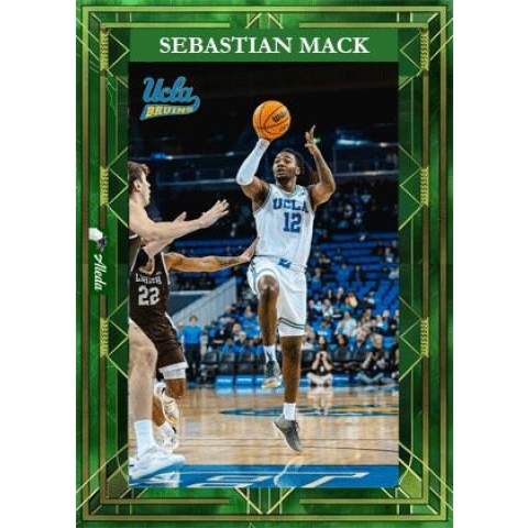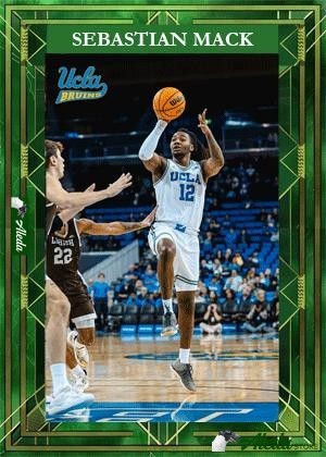 This trading card is comprised of 5 high resolution images of Sebastian Mack playing basketball for UCLA. The web view contains low resolution teaser images and a clipped video. .By purchasing the digital trading card, you can access the high resolution images and video, which you may download. By purchasing this card, the athlete will receive compensation directly to help with their student athlete goals through the NIL (Name Image Likeness) program.
