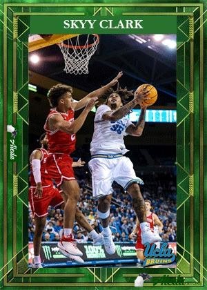 This trading card is comprised of 6 high resolution images of Skyy Clark playing basketball for UCLA. The web view contains low resolution teaser images and a clipped video. .By purchasing the digital trading card, you can access the high resolution images and video, which you may download. By purchasing this card, the athlete will receive compensation directly to help with their student athlete goals through the NIL (Name Image Likeness) program.
