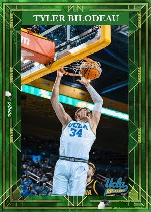 This trading card is comprised of 4 high resolution images and a film clip of Tyler Bilodeau playing basketball for UCLA. The web view contains low resolution teaser images and a clipped video. .By purchasing the digital trading card, you can access the high resolution images and video, which you may download. By purchasing this card, the athlete will receive compensation directly to help with their student athlete goals through the NIL (Name Image Likeness) program.