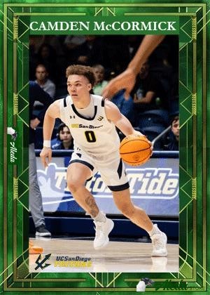 This trading card is comprised of 5 high resolution images of Camden McCormick playing basketball for UCSD. The web view contains low resolution teaser images and a clipped video. .By purchasing the digital trading card, you can access the high resolution images and video, which you may download. By purchasing this card, the athlete will receive compensation directly to help with their student athlete goals through the NIL (Name Image Likeness) program.