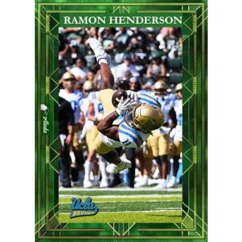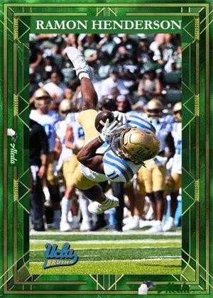This trading card is comprised of 4 high resolution images Ramon Henderson playing football for UCLA. The web view contains low resolution teaser images and a clipped video. .By purchasing the digital trading card, you can access the high resolution images and video, which you may download. By purchasing this card, the athlete will receive compensation directly to help with their student athlete goals through the NIL (Name Image Likeness) program.
