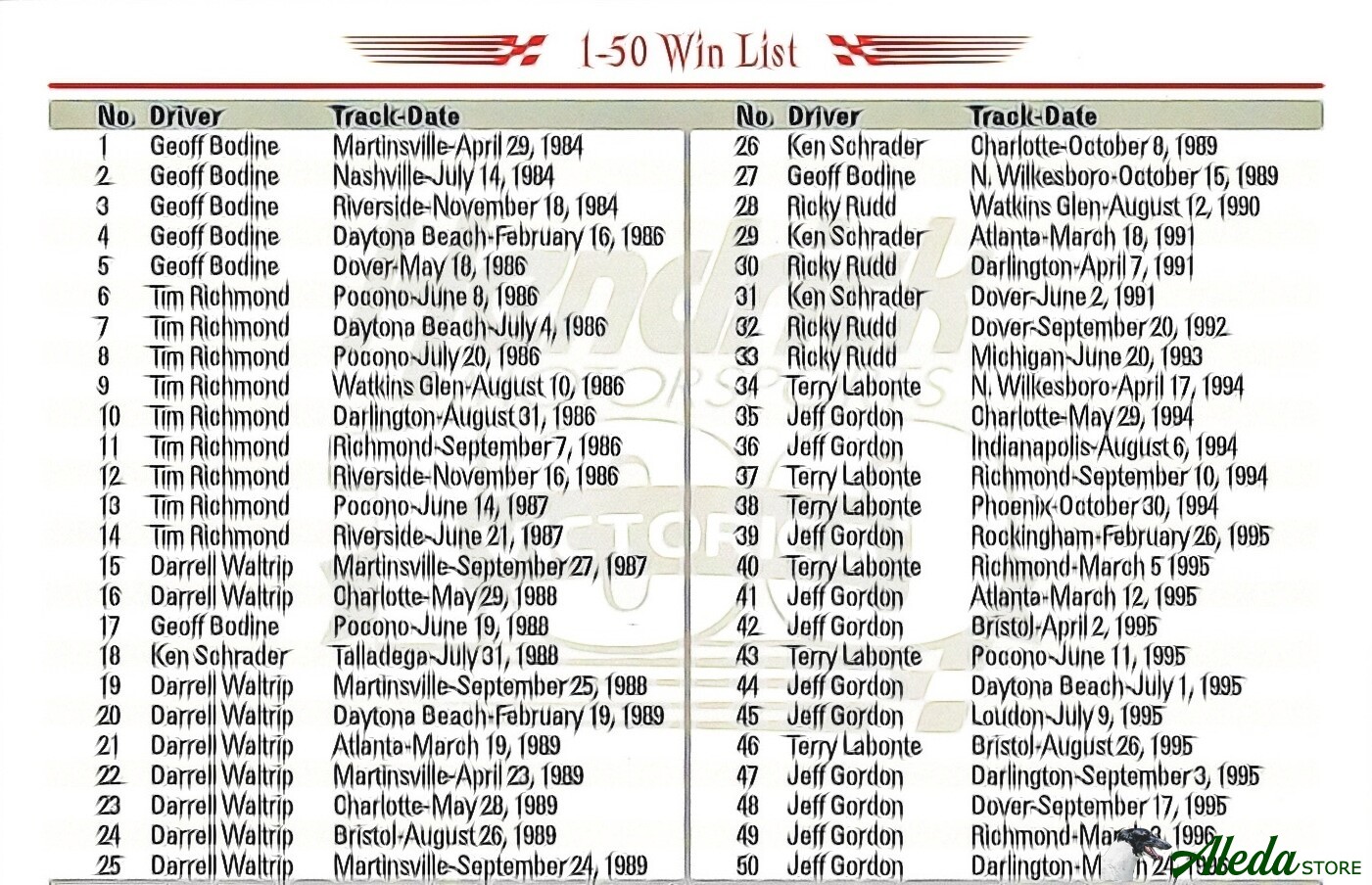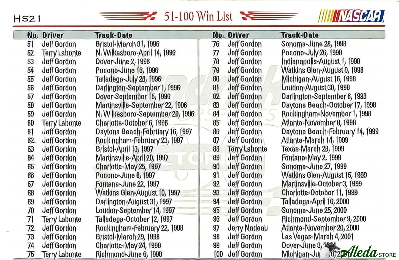 In 2001, Super Shots Sports created a very popular trading card product featuring the 8 drivers who won races during the first 100 Wins for Hendrick Motorsports.