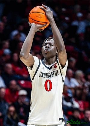 This trading card is comprised of 4 high resolution images and a film clip of Magoon Gwath playing basketball for SDSU. The web view contains low resolution teaser images and a clipped video. .By purchasing the digital trading card, you can access the high resolution images and video, which you may download. By purchasing this card, the athlete will receive compensation directly to help with their student athlete goals through the NIL (Name Image Likeness) program.