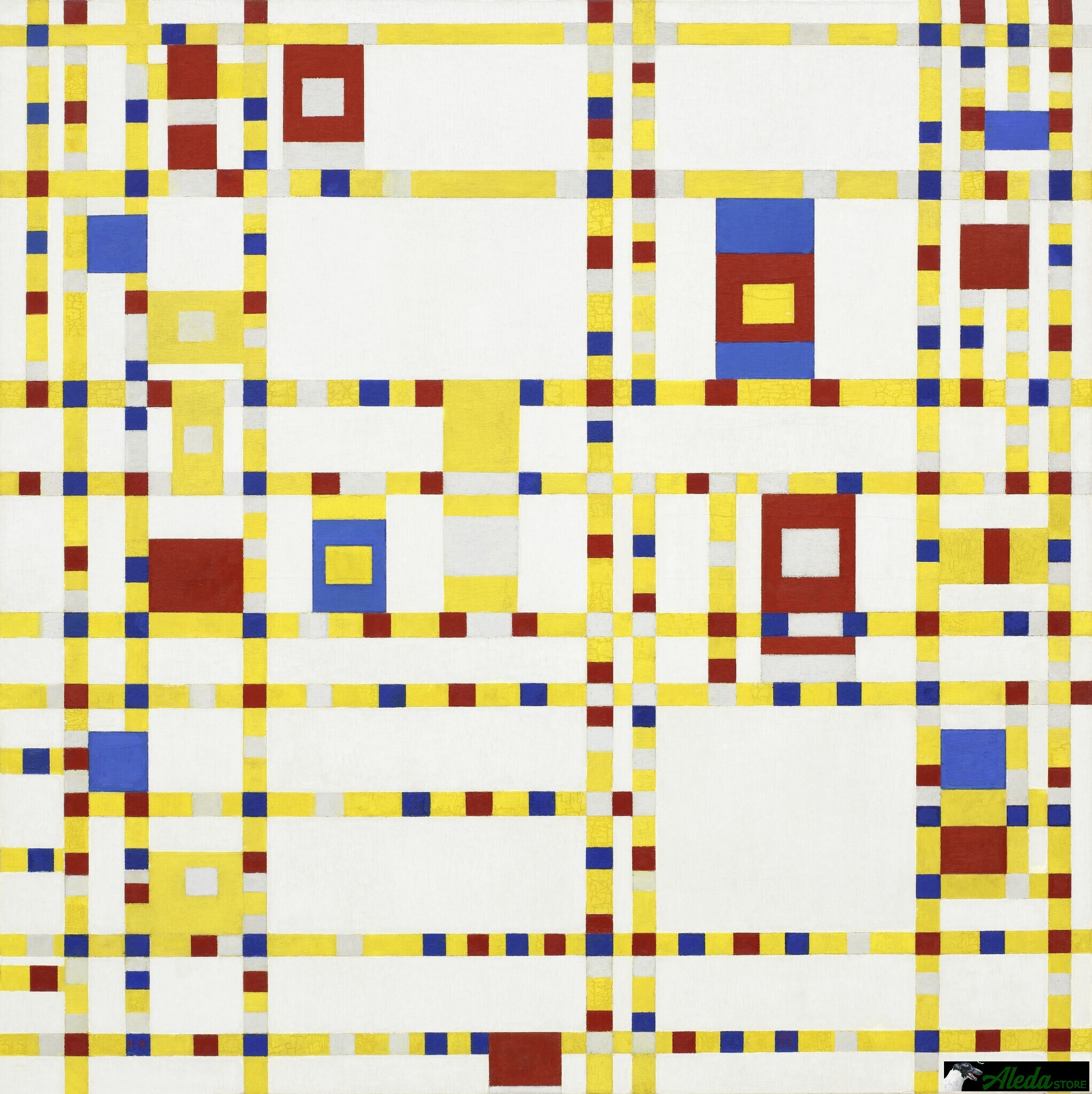 Mondrian arrived in New York in 1940, one of the many European artists who moved to the United States to escape World War II. He immediately fell in love with the city and with boogie-woogie music, to which he was introduced on his first evening in New York. Soon he began, as he said, to put a little boogie-woogie into his paintings.