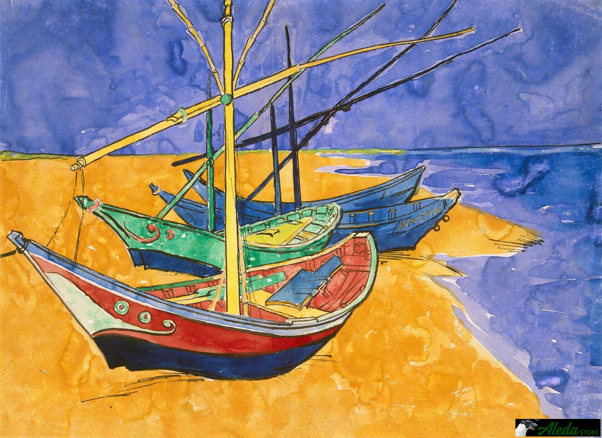 Van Gogh would have preferred to make this painting on the beach, but he couldn't, because the fishermen put out to sea very early every morning. He did draw the boats there, however, and later made this painting at home