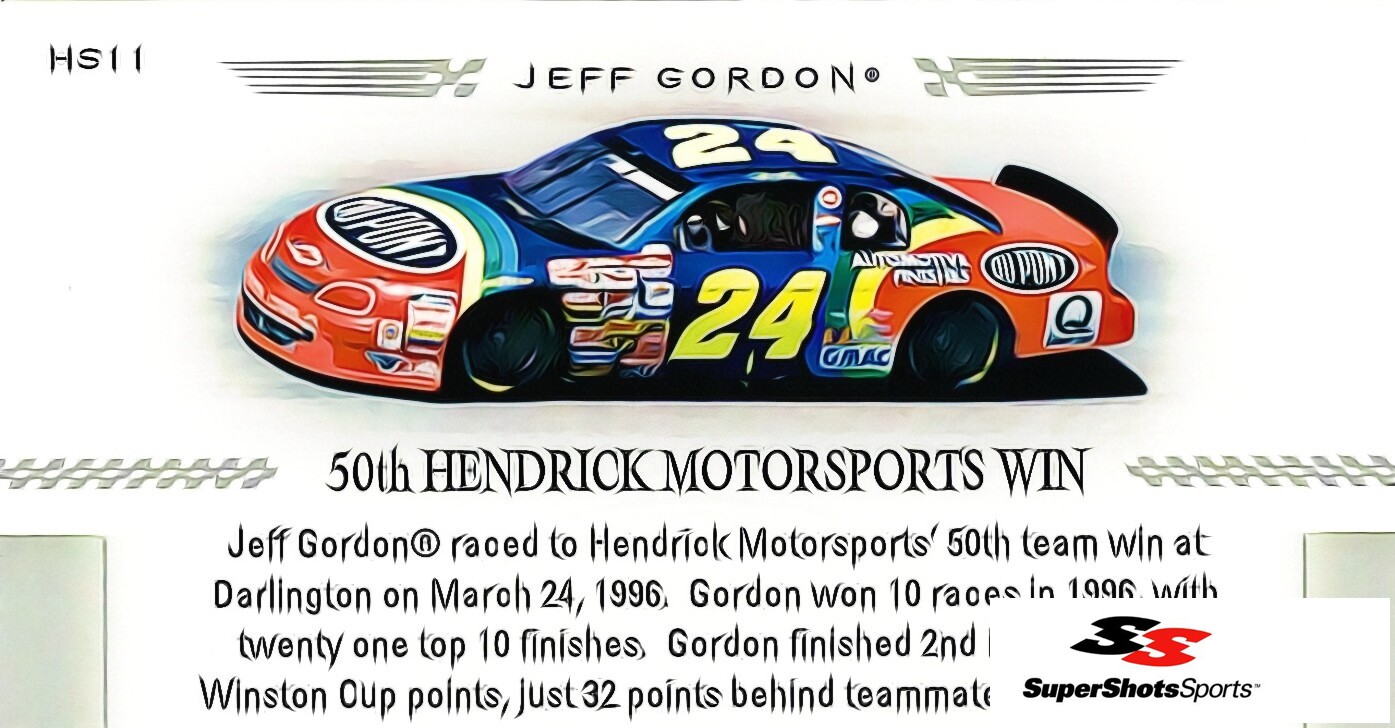 In 2001, Super Shots Sports created a very popular trading card product featuring the 8 drivers who won races during the first 100 Wins for Hendrick Motorsports.